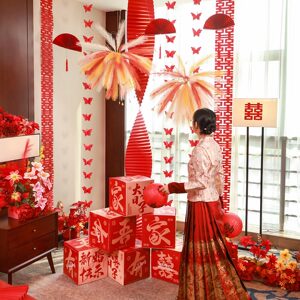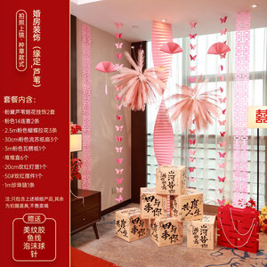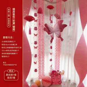 酒店婚房布置套装婚礼囍字客厅晨袍拍照结婚长条喜字贴背景墙装饰
