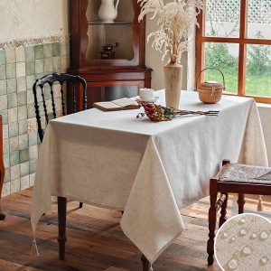 北欧风防水桌布亚麻涤刺绣轻奢氛围感装饰茶几盖巾防尘台布餐桌布