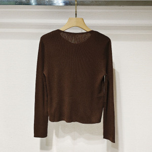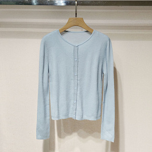 1件起批2025秋女装 圆领单排扣修身显瘦长袖假两件针织衫S250705