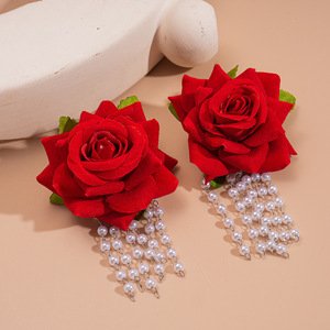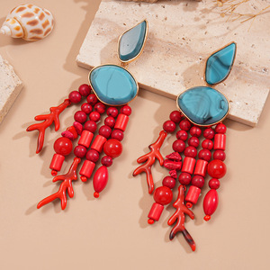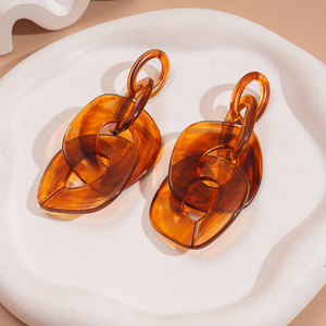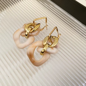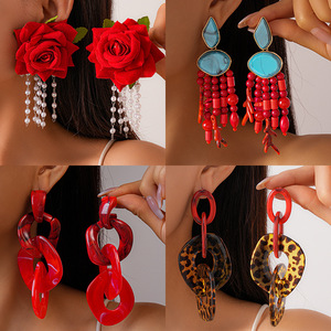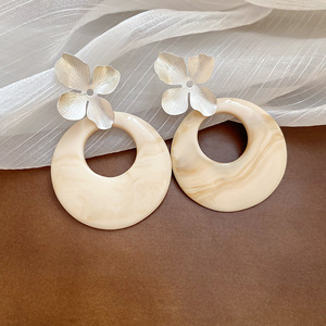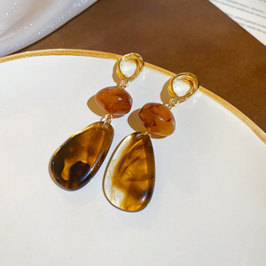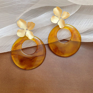 银针秋冬复古花朵流苏树脂耳环轻奢高级感耳钉欧美跨境时尚耳饰女