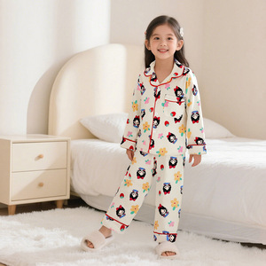 新款纯棉儿童长袖家居服男童女童翻领睡衣中大童春秋款家居服套装