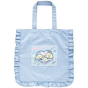 角落生物蓝色格子花边单肩包学生日常通勤可爱木耳边大容量购物袋