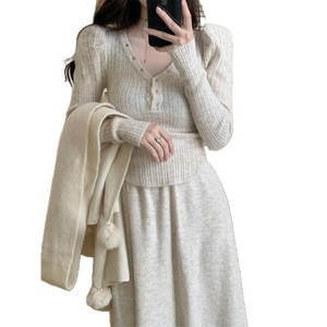 高级感小洋装套装女装V领泡泡袖针织衫上衣秋冬半身裙气质两件套