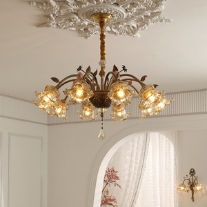 2025新款法式田园风客厅吊灯复古浪漫陶瓷花高级感餐厅卧室全铜灯