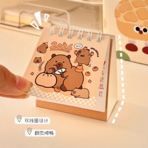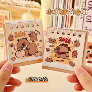卡皮巴拉小台历2026年新款迷你日历可爱水豚月历马年桌面装饰摆件