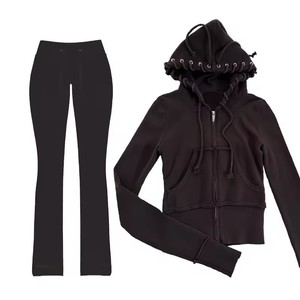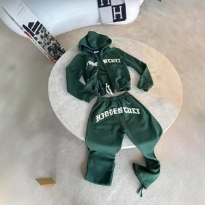跨境新款欧美风爆款潮流短款街头风连帽卫衣外套上衣修身长裤套装