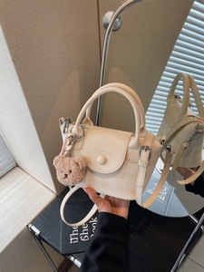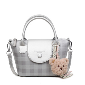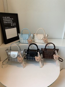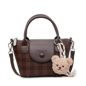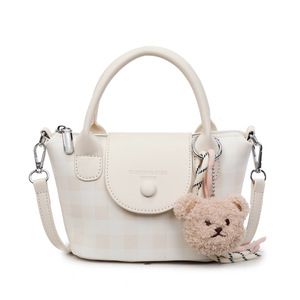 可爱小熊挂饰格纹小方包女2025夏季新款单肩斜挎包时尚百搭手提包