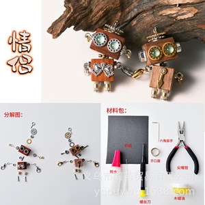 纯手工外贸跨境木质蒸汽朋克机器人暖场团建diy材料包挂件钥匙扣