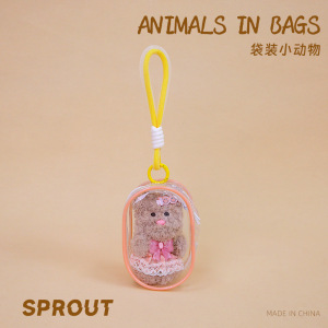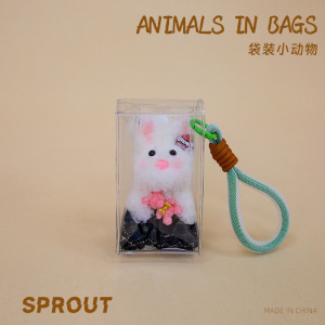 迷你袋装小动物透明钥匙扣挂件小白狗收纳包毛绒玩具公仔可爱娃娃