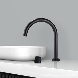 全铜分体式把双孔面盆冷热水龙头洗脸盆枪灰色拉丝银现代简约风