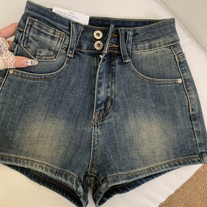 美式复古牛仔短裤女2025夏季爆款高腰紧身辣妹小个子弹力a字热裤
