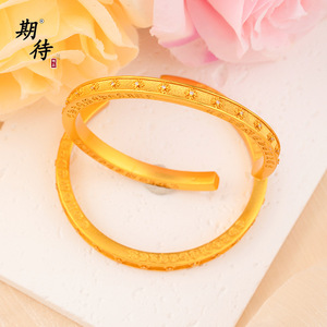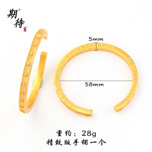 金店同款古法沙金中古拉丝点钻开口方形手镯百搭手饰时尚满钻手镯