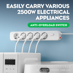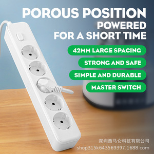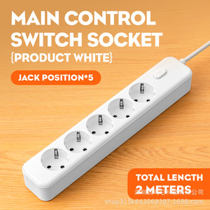 2/3米欧盟欧规5孔位插头交流插座多接电源排插延长线插座智能家庭