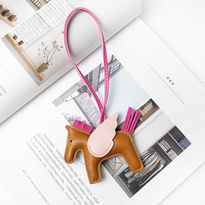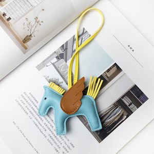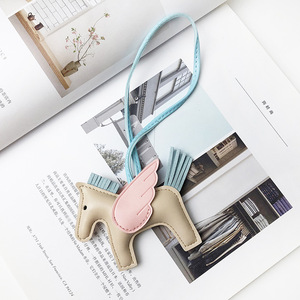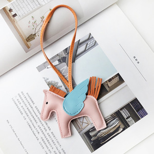 H家挂件小飞马皮质可爱流苏撞色适用于爱马仕包包挂饰小马车吊饰