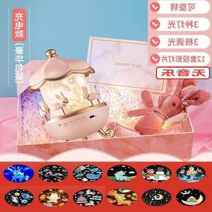 幸运兔充电遥控旋转12图八音盒款-投影灯送贴纸精美包
