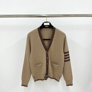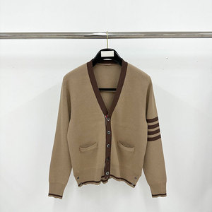 23FW 秋冬新款撞色百搭显瘦经典四杠V领针织开衫外套