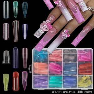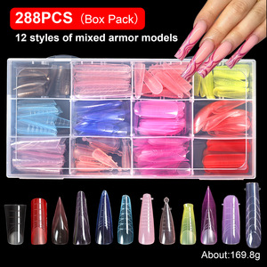 跨境爆款美甲彩色甲模快速光疗甲 免纸托多尺寸混装无痕水晶甲片