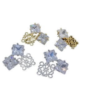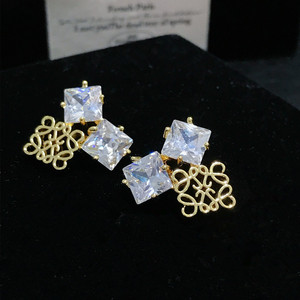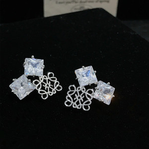 罗家新款高级感锆石几何镂空方形耳钉银针轻奢个性时尚耳环饰品女