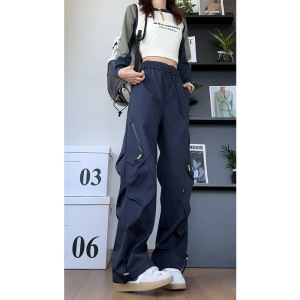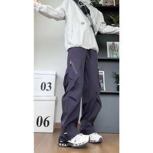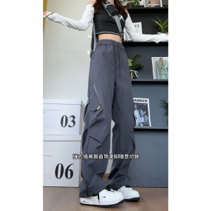 美式压褶工装裤男女秋季潮流三防冲锋裤宽松大码百搭显瘦休闲裤子