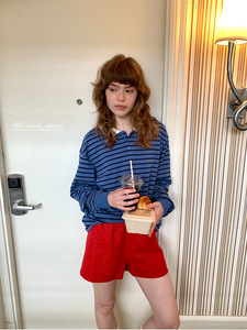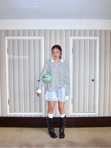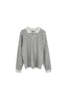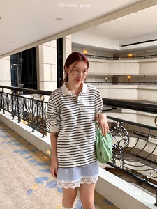 ovinsyang Pol领条纹王恤女秋季韩系学院风宽松休闲长袖上衣