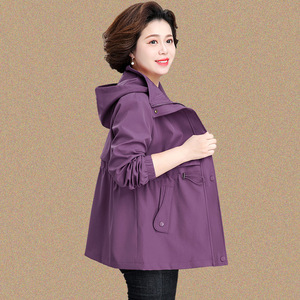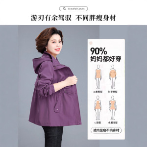 老年人秋装外套女2025新款中老年妈妈春秋风衣洋气阔太太连帽上衣