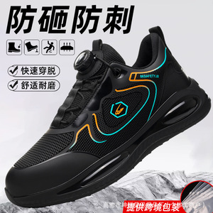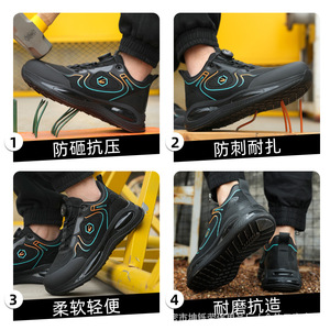 亚马逊批发防砸防刺穿舒适劳保鞋男 钢包头科技纽扣防泼水工作鞋