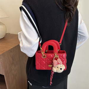 跨境绣线手提戴妃小方包高级百搭时尚通勤菱格小香风单肩斜挎女包