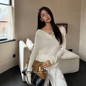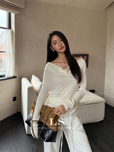 【LS新品牌】黑标极简大牌 早秋上新极简时尚纯色荡领上衣女30303