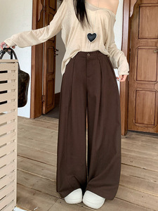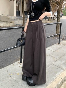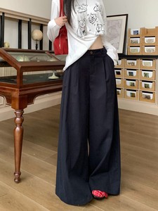 韩系慵懒风高腰垂感宽松休闲裤2025秋季新款阔腿西裤拖地长裤女装