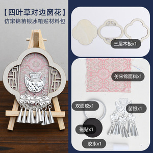 【方形半边窗花】仿苗银宋锦冰箱贴材料包