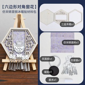 【六边形对角窗花】仿苗银宋锦冰箱贴材料包