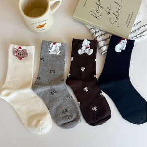 可爱袜子卡通无骨小狗灰色吸汗中筒袜