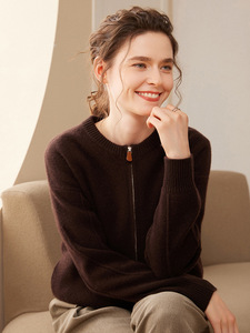 25秋冬新款女士休闲羊绒衫圆领拉链开衫女休闲加厚针织毛衣外套女