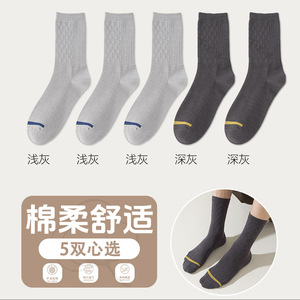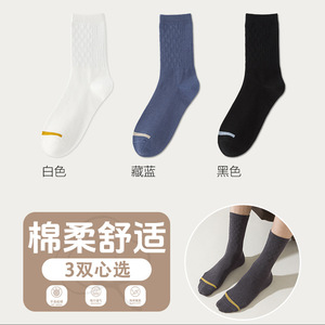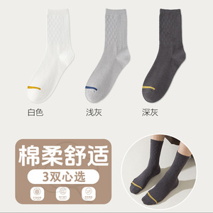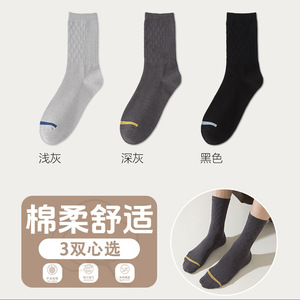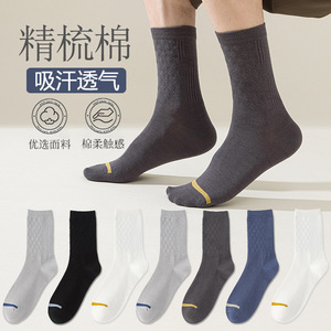 春秋季袜子男士中筒袜吸汗透气棉袜秋冬款条纹简约百搭长袜子