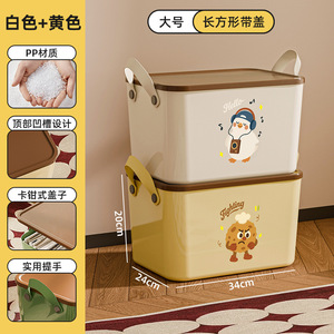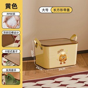收纳箱卡通图案带盖储物卧室宿舍家用杂物收纳盒整理玩具零食
