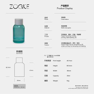 30ml磨砂透蓝色蛋糕瓶配加高白盖+亚白胶头;空白瓶;耐热玻璃