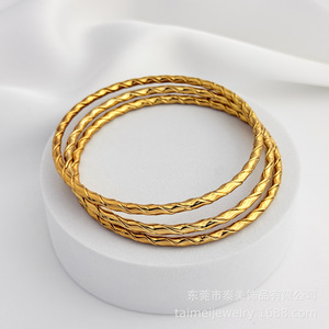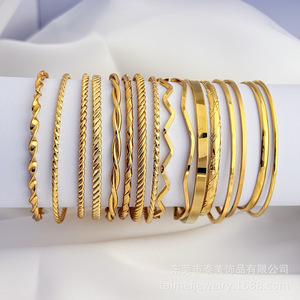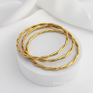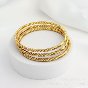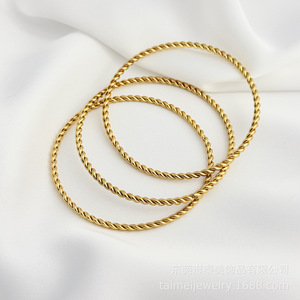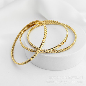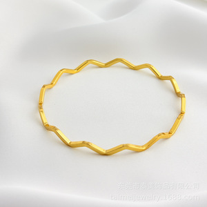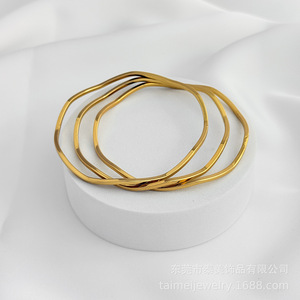 跨境热销纽线光面手环不锈钢方线麻花手镯钛钢波浪手饰球面首饰饰