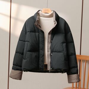 撞色立领短款棉服2025冬季新韩版宽松加厚小个子外套ins棉衣