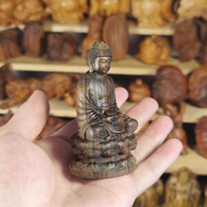 8cm印尼达拉干木雕佛像桌面家居大日如来摆件文玩雕刻释迦牟尼