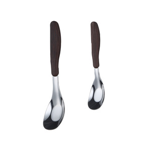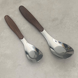 家用304不锈钢儿童餐具仿木纹手柄餐勺宝宝辅食勺吃饭喂养元宝勺
