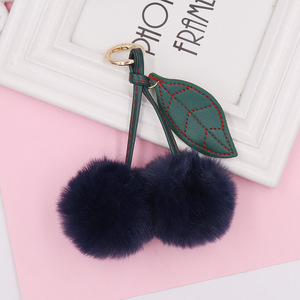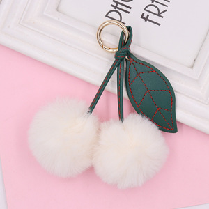 水果樱桃毛绒钥匙扣 女士毛球包包钥匙链书包包挂件汽车钥匙挂饰