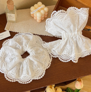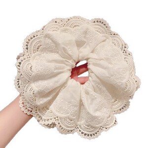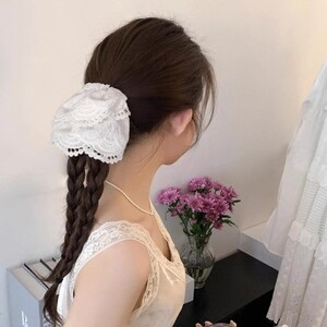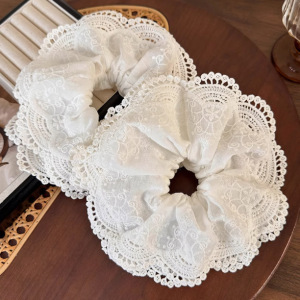 韩系丸子头白色蕾丝大肠发圈头绳大头花头饰女高级感法式马尾发绳