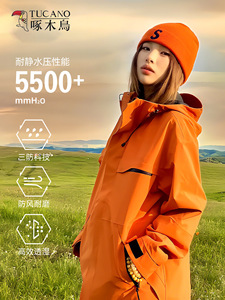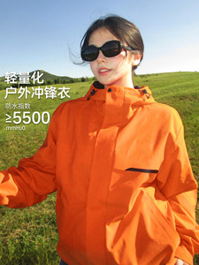 啄木鸟橙色冲锋衣女新款三合一小个子户外川西旅游穿搭夹克男外套