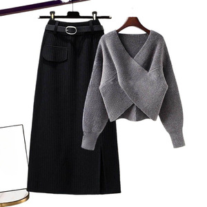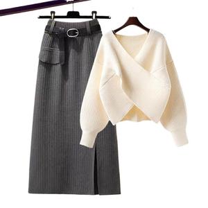 毛衣新款韩版高腰半身裙显瘦大码女装设计感两件套2025秋冬套装女