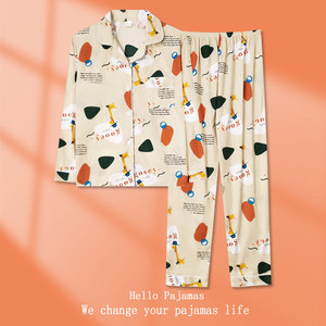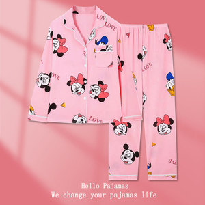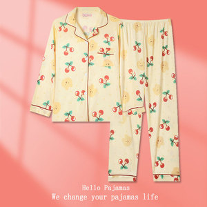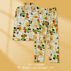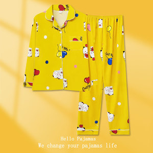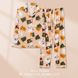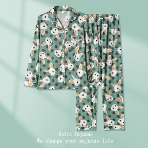 跨境直供春秋季睡衣女可爱小熊韩版开衫长袖休闲少女士家居服套装