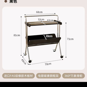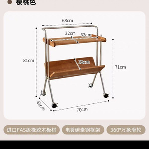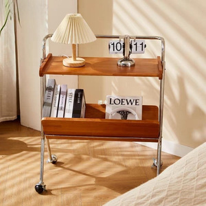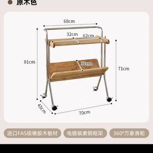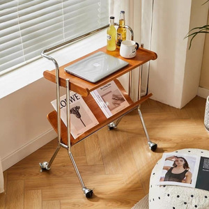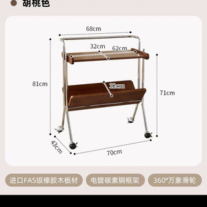 简约现代实木橡胶木长方形置物架客厅茶几带滚轮可移动边几置物车