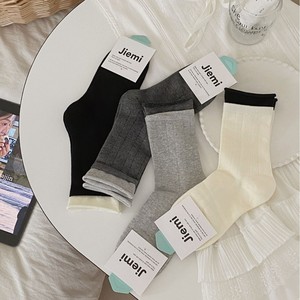 卷边双罗口月子袜女秋季纯棉中筒纯色堆堆袜配小皮鞋新疆棉批发