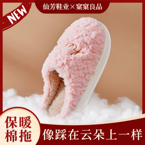 情侣毛茸茸棉拖鞋女款厚底保暖加绒加厚防滑家居男秋冬室内软底
