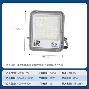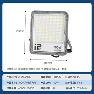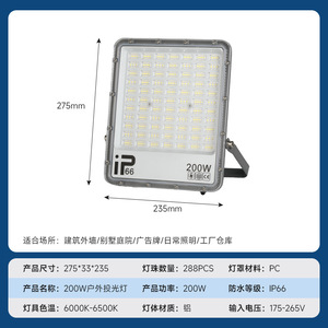 led投光灯 220V户外防水工厂庭院室外照明工地厂房强光泛光灯批发