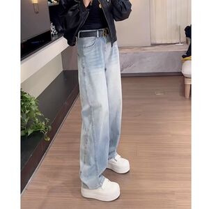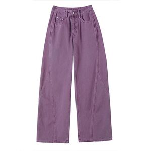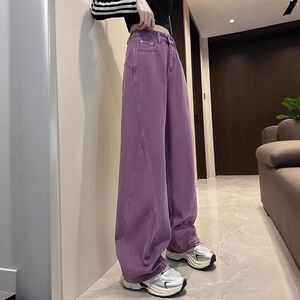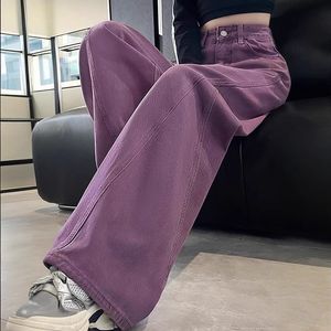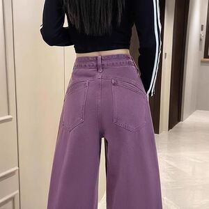 阔腿牛仔裤女工装弯刀裤子2025流行春季宽松今年紫色高腰显瘦新款